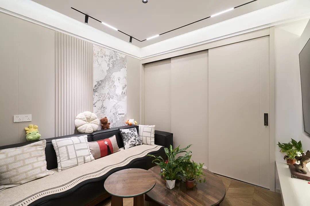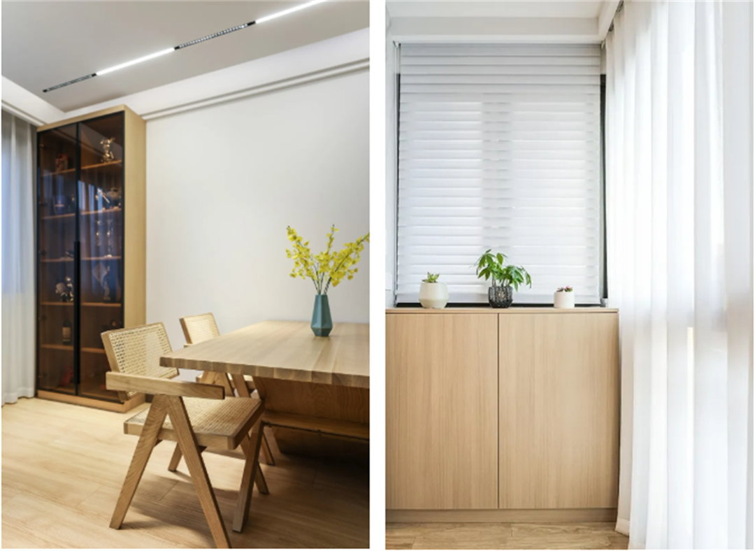 設計師選用原木風進行裝修規劃,并對房屋格局進行優化,確保空間利用的合理及實用。既節省花費也能為將來的功能需求作預留。