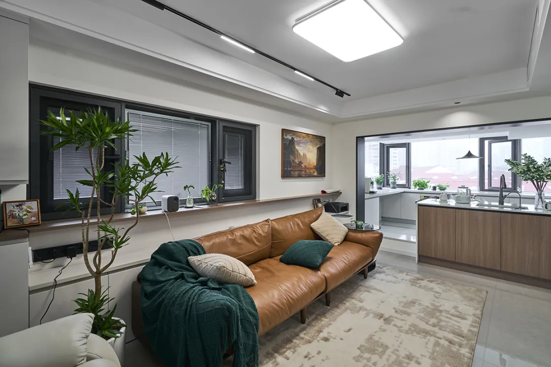 根據業主需求我們把陽臺改成了現代化的廚房和餐廳,原來的餐廳區域變成了一個功能齊全的工作室。樓上的空間也沒浪費,做了兩個臥室和一個休閑區,特別適合一家四口住。