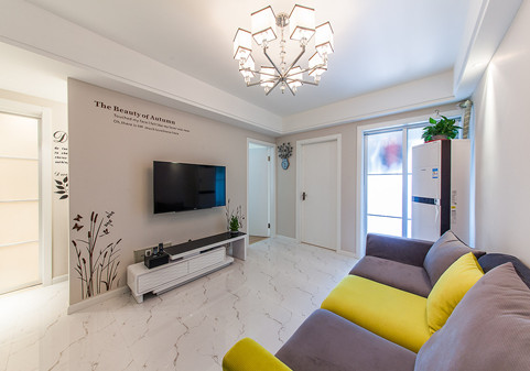 客廳以地中海風格主色調藍白(大海.藍天為伍),與光.大自然融合的特殊風情,空間設計透著白.藍.黃色調的點綴增加空間的活躍感,它的基調是明亮.熱烈和豐富的色彩。