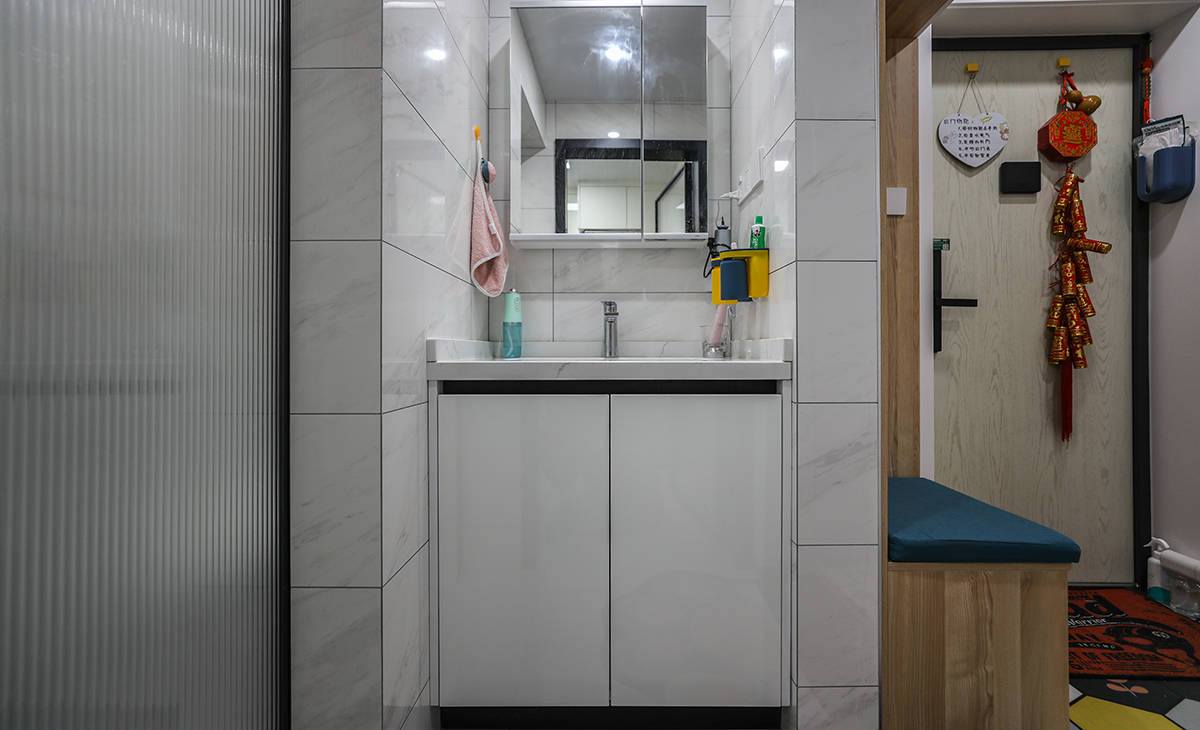 本套房子的玄關(guān)設(shè)計(jì)也是一大亮點(diǎn),入戶玄關(guān)是一個(gè)緩存過度地段,門口的換鞋凳方便換鞋,加上掛大衣外套的功能,使空間更加完善。