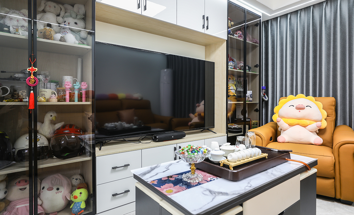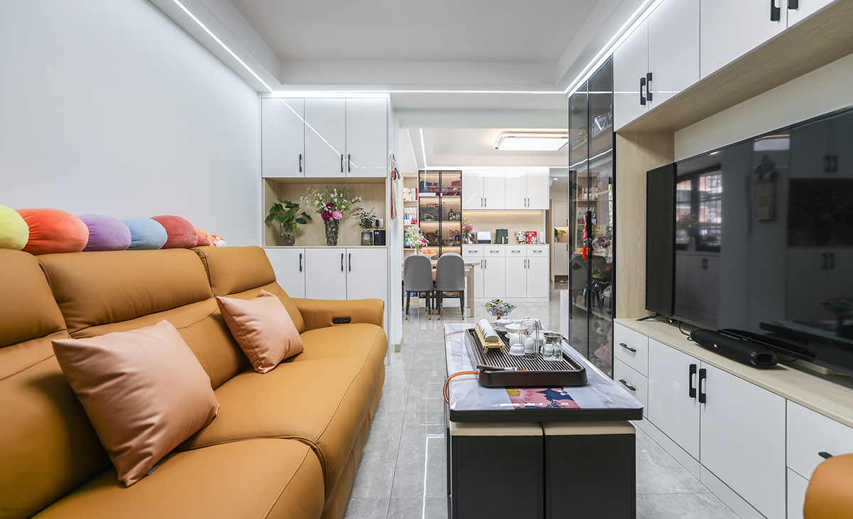 客廳是一家人活動頻率最高的區域,要求寬闊、明亮,儲物空間
