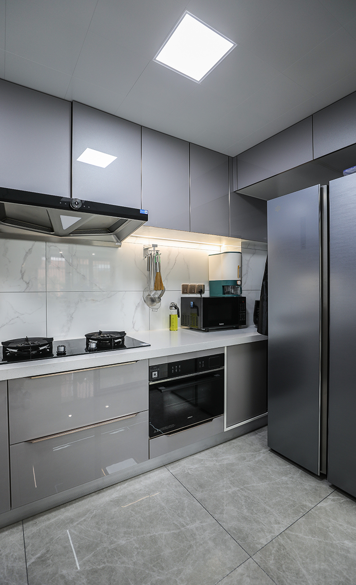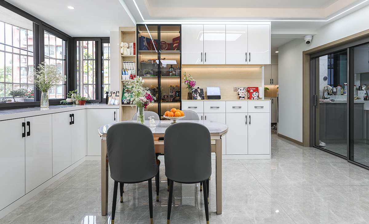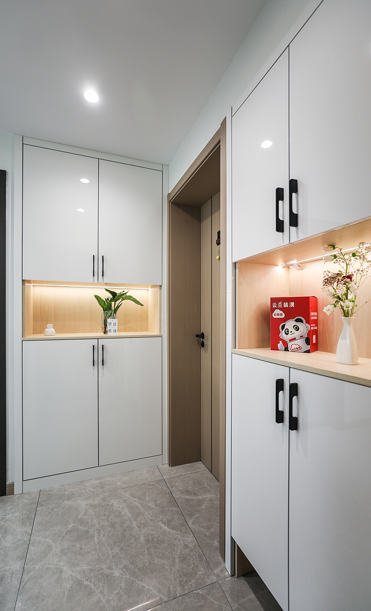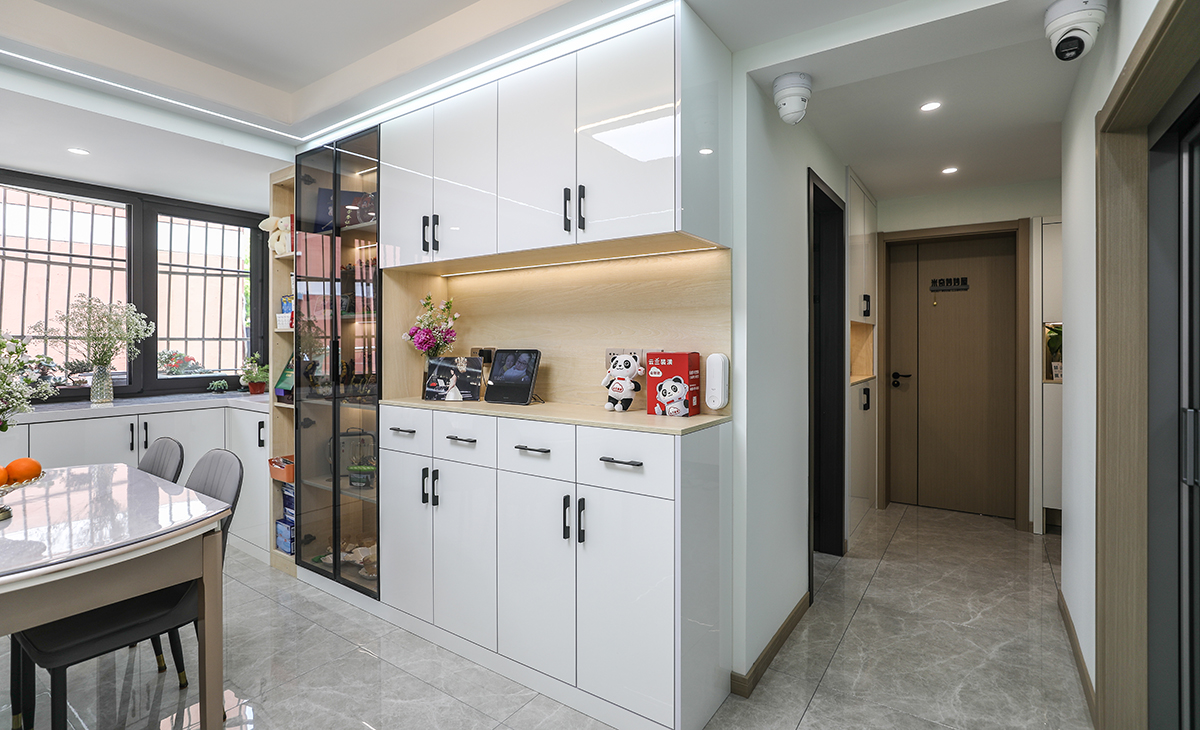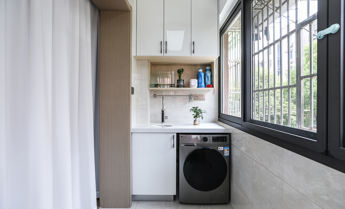 男女主人都是自由職業者,生活隨性,不拘一格,家里物品多,設計上我們充分利用每一個角落空間,增加了收納,風格簡約