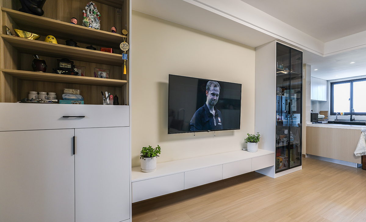 客廳是一家人活動頻率最高的區域,要求寬闊、明亮,儲物空間