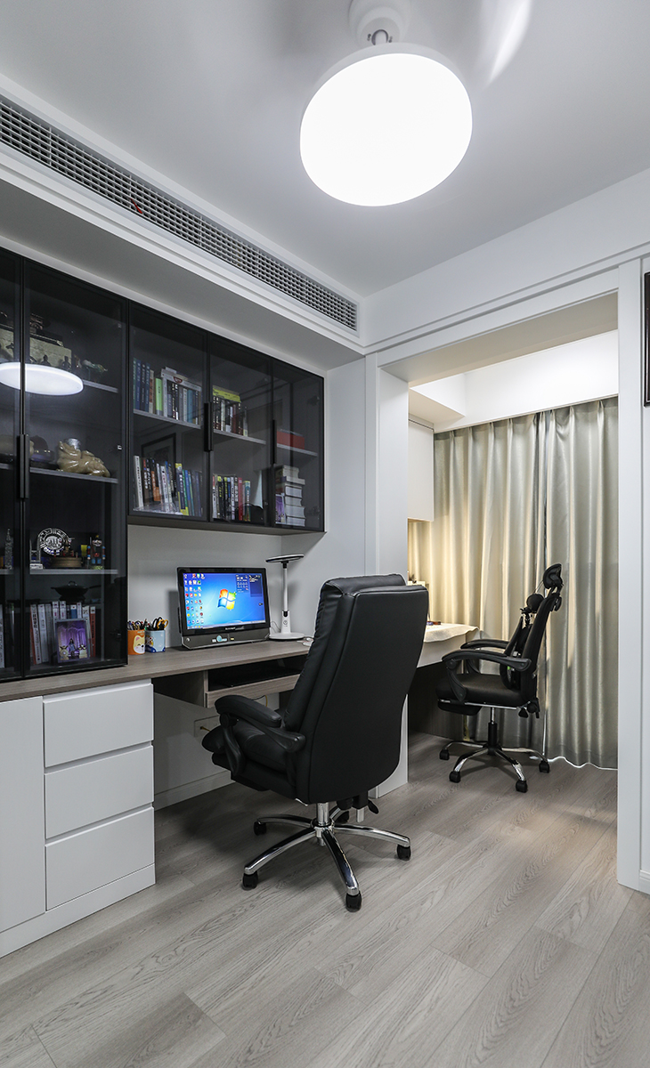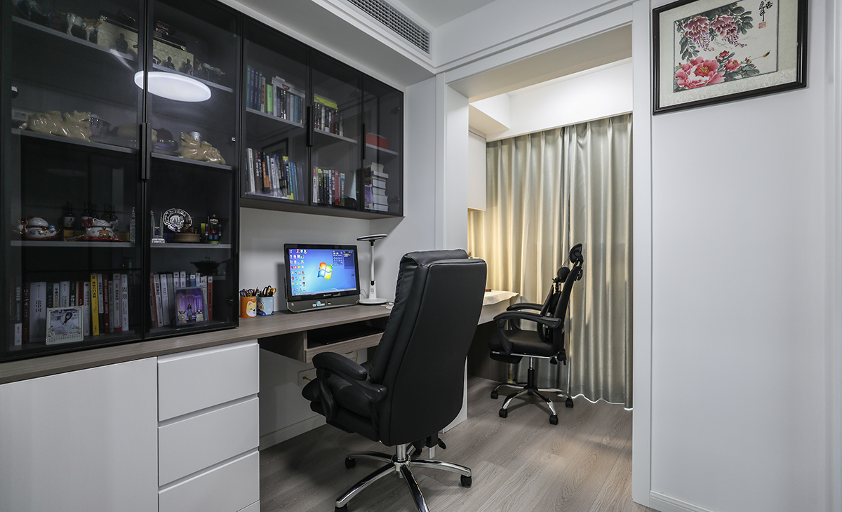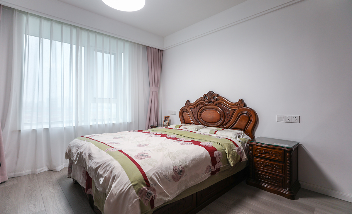 次臥是父母的空間,比較簡潔,墻面乳膠漆,色彩上干凈、簡煉,空間上靈活自如,簡潔明亮。