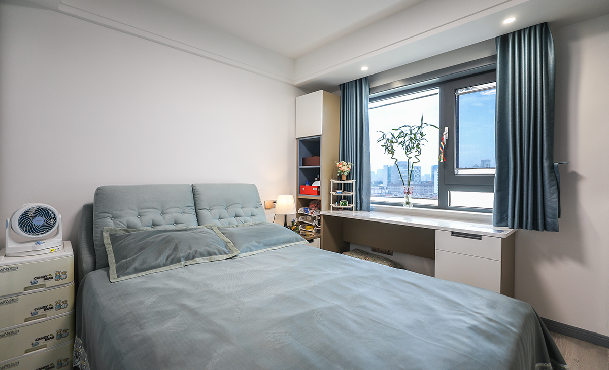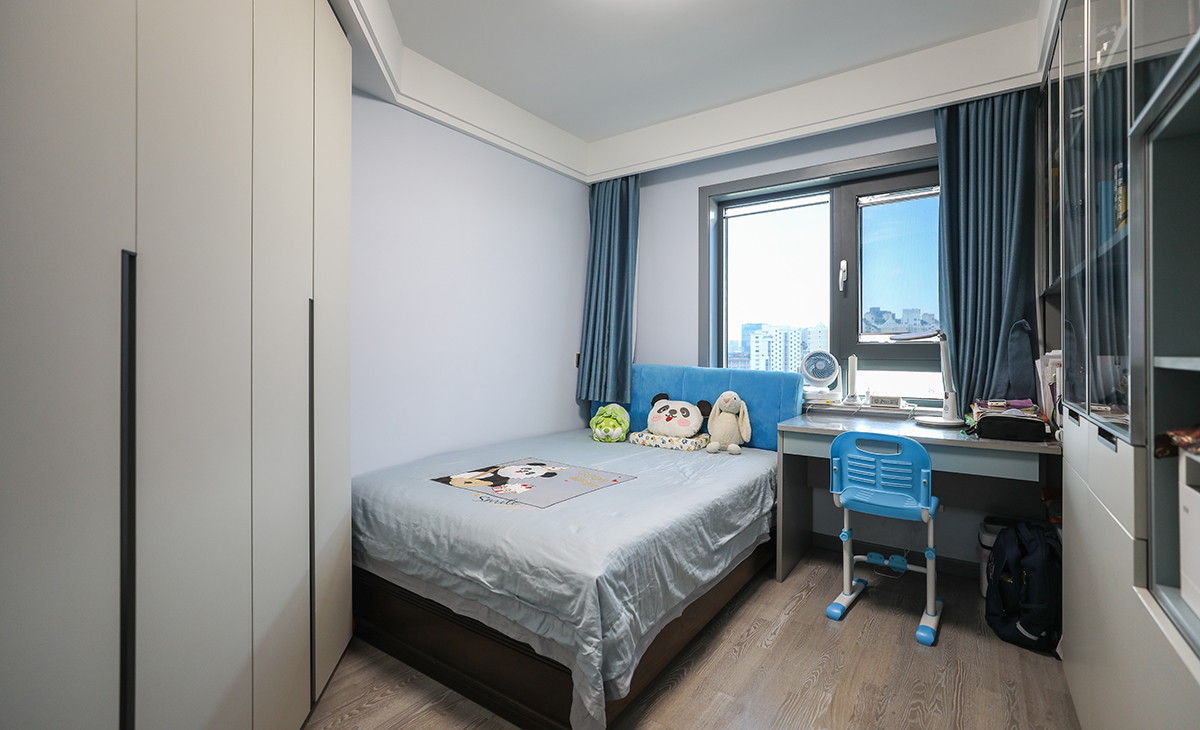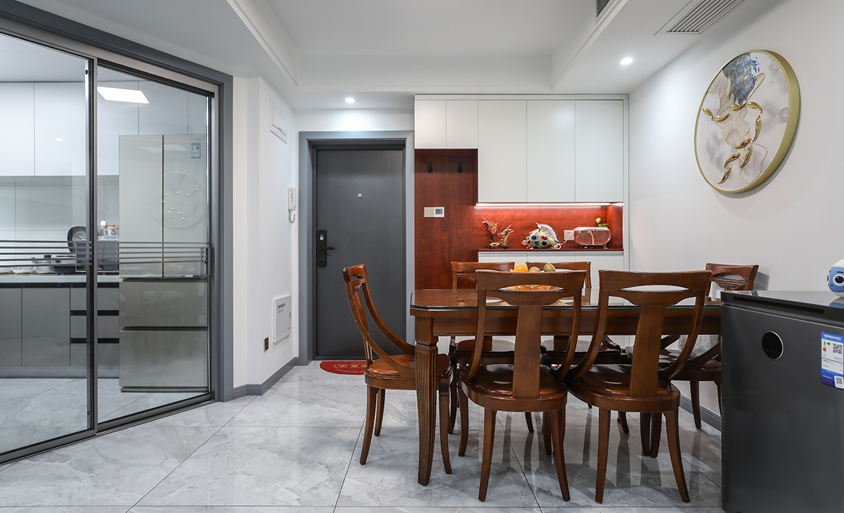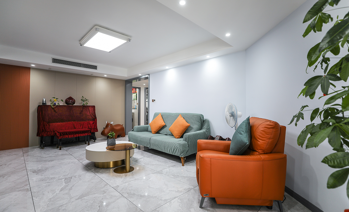該居室男女主人都是60歲左右的老年成功人士,孫子時常一起居住,生活品質(zhì)要求很高,喜歡明亮大氣,可以略微的裝飾背景點(diǎn)綴,在造型和色彩上要求簡約而不簡單,所以該套居室整體裝修風(fēng)格是現(xiàn)代簡約風(fēng)格,電視墻采用集成墻板,鋼琴那一面背景采用格柵背景拼接裝飾。餐廳選用柚木實(shí)木餐桌,更加彰顯客戶的穩(wěn)重,也是身份地位的體現(xiàn),客廳的鋼琴點(diǎn)綴也體現(xiàn)了主人的高尚情操和對美好生活的向往。
