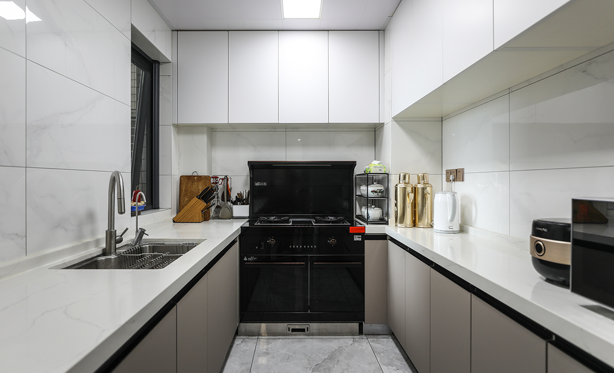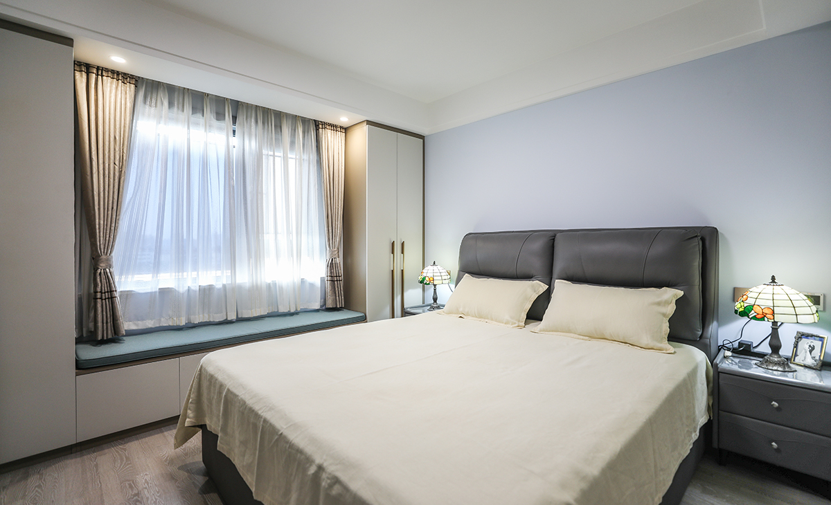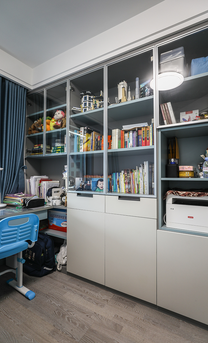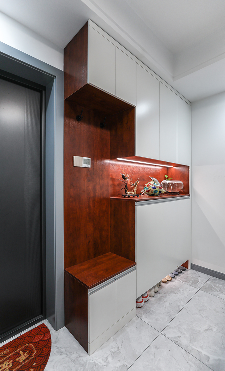 該居室男女主人都是60歲左右的老年成功人士,孫子時常一起居住,生活品質(zhì)要求很高,喜歡明亮大氣,可以略微的裝飾背景點(diǎn)綴,在造型和色彩上要求簡約而不簡單,所以該套居室整體裝修風(fēng)格是現(xiàn)代簡約風(fēng)格,電視墻采用集成墻板,鋼琴那一面背景采用格柵背景拼接裝飾。餐廳選用柚木實(shí)木餐桌,更加彰顯客戶的穩(wěn)重,也是身份地位的體現(xiàn),客廳的鋼琴點(diǎn)綴也體現(xiàn)了主人的高尚情操和對美好生活的向往。
