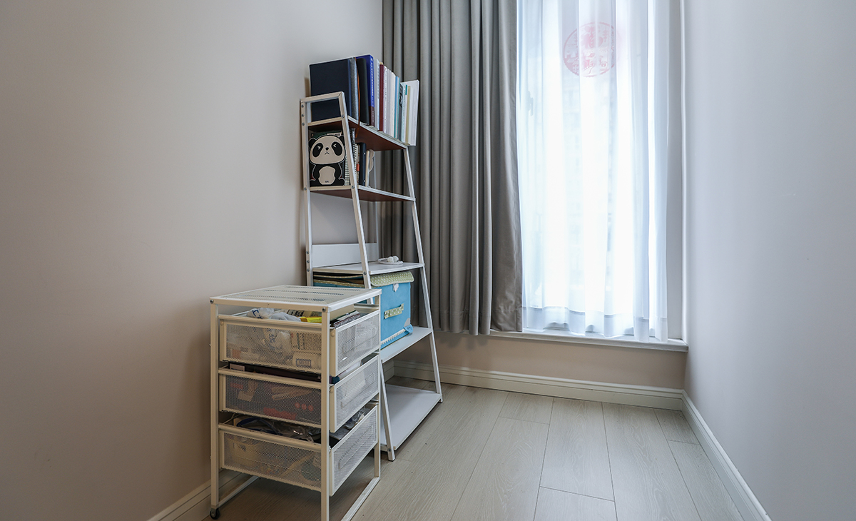 次臥現(xiàn)暫時不住人留給偶爾來的父母住,所以主打的是儲物為主,我們在做設計時增加了一整排的衣柜。為女主人增加了相當于衣帽間的功能。