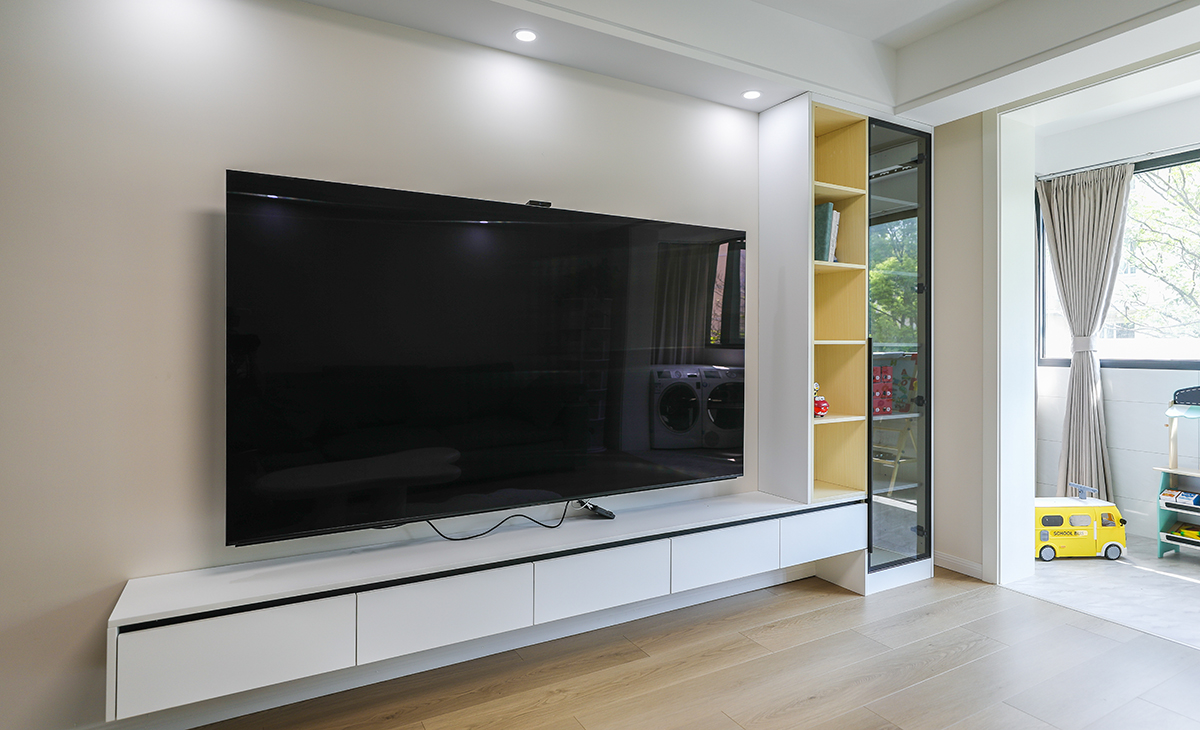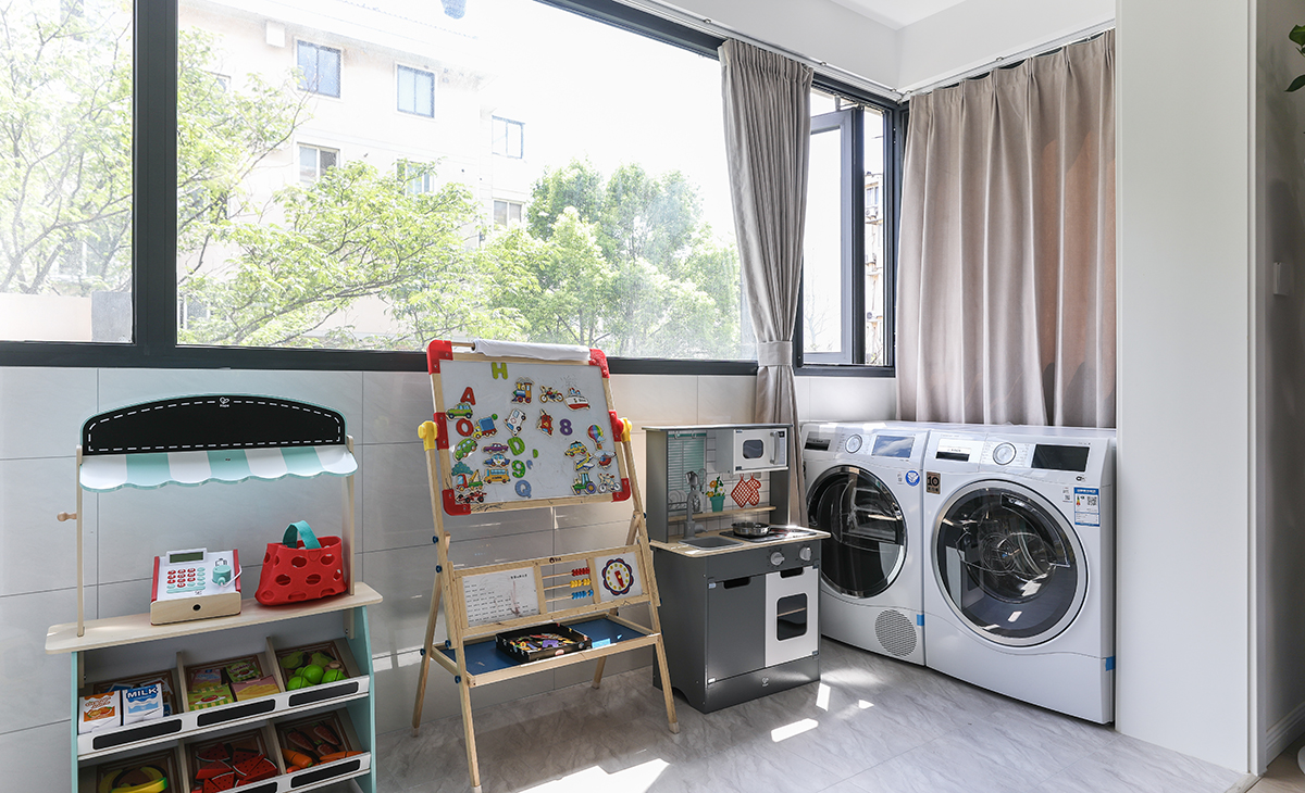 餐廳的空間利用的可以說是完美無缺了,在充分考慮到不影響視覺效果的前提下,放大了餐廳的尺寸,并且安排了轉(zhuǎn)角餐邊柜,收納直接翻倍。