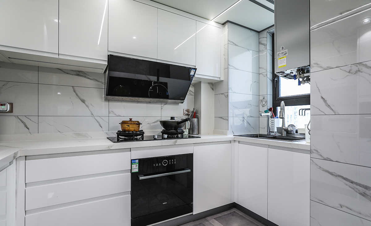 家中廚房也是設(shè)計的一大亮點(diǎn),廚房原本很小,我們做了外擴(kuò),面積放大,解決了洗蒸烤的需求,做了一個電器的高柜,家中有再多的小家電也有地方放置了。