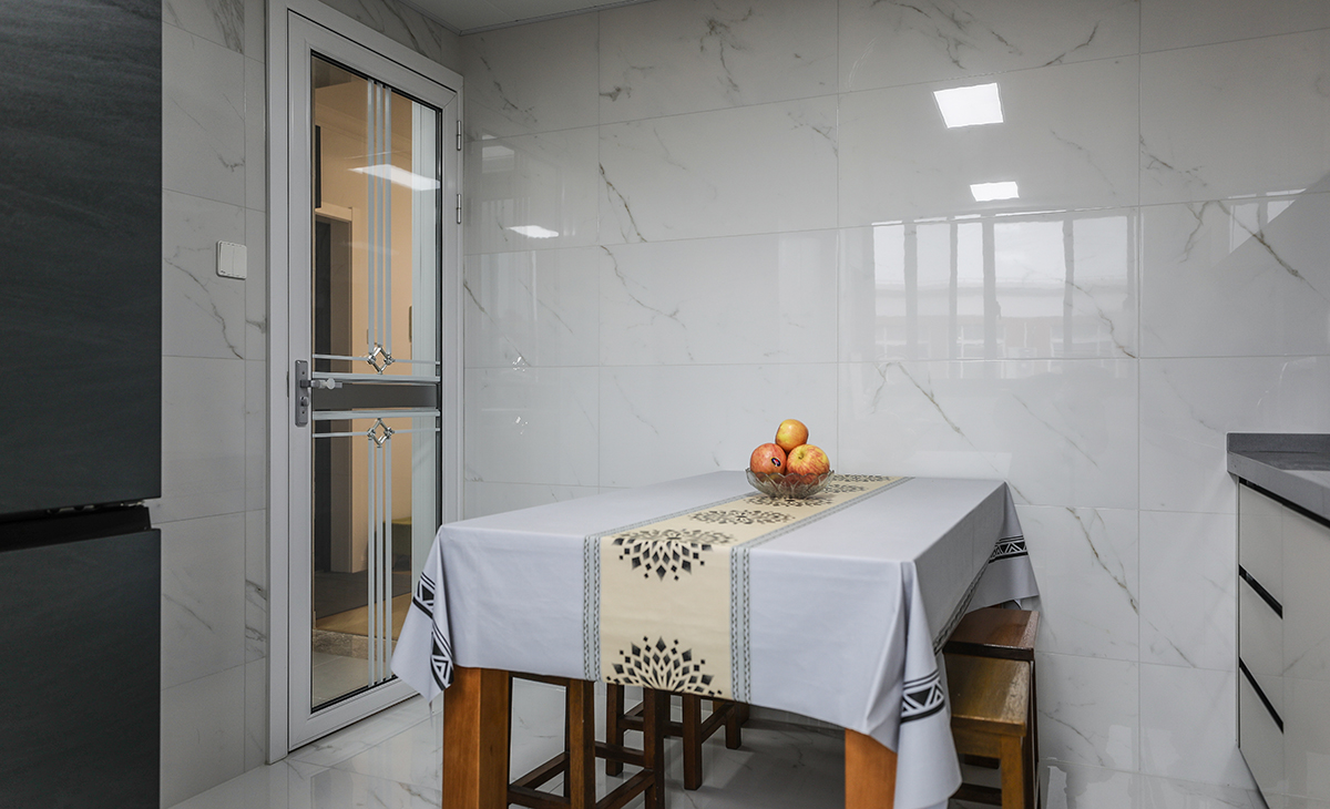 餐廳空間比較方正寬敞,不放餐桌的餐廳空間簡單又實用。