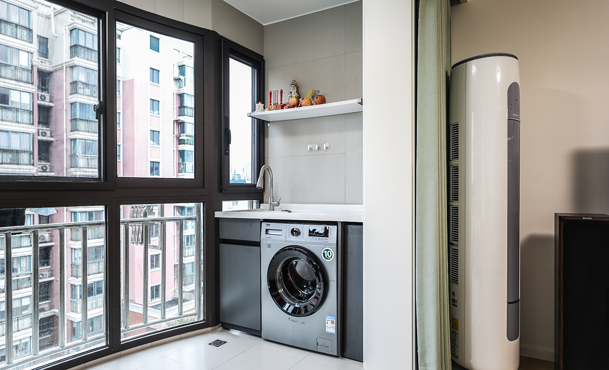 衛(wèi)生間干濕分離,干區(qū)放置90公分洗臉盆,簡潔實用。