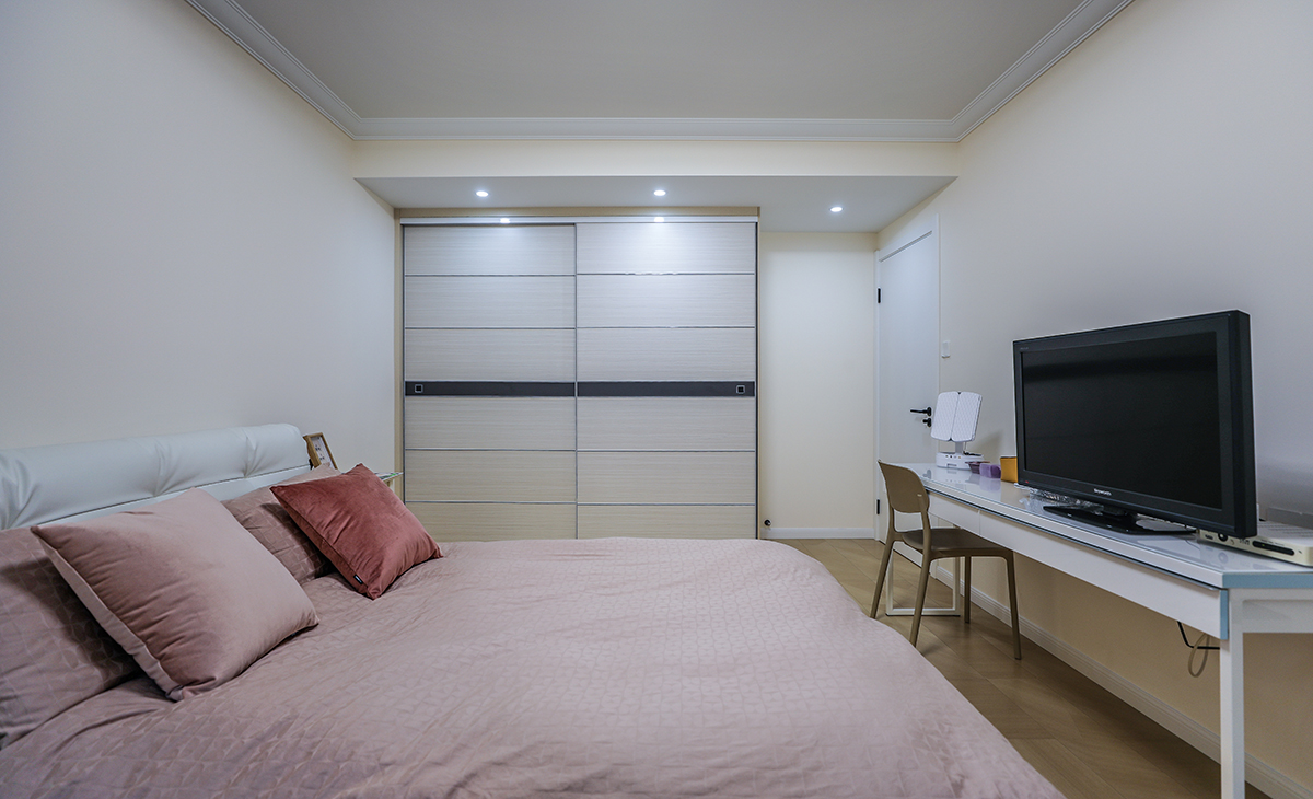 臥室整體風格就是簡單色調(diào)溫馨,體現(xiàn)了女主的簡單直爽的性格。
