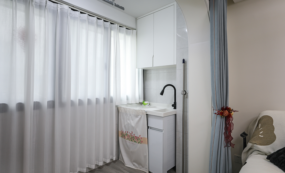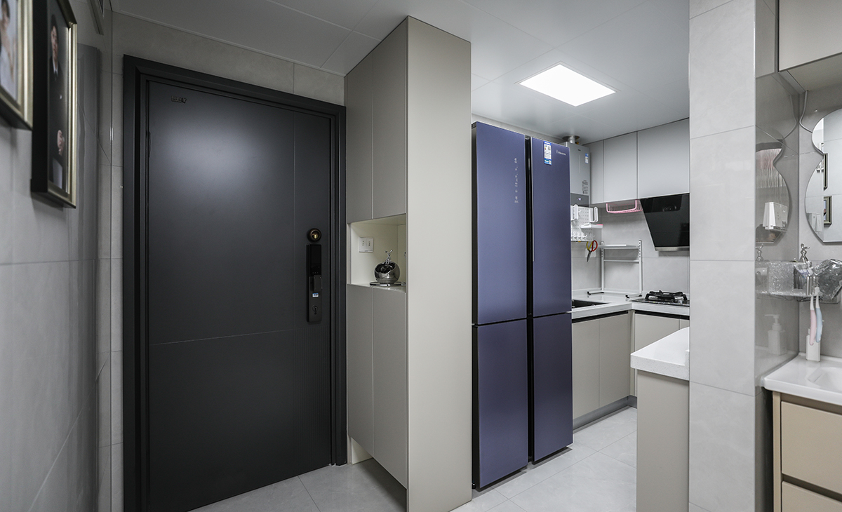 該套房子廚房空間利用非常合理,U字型三面櫥柜,顏色簡潔明快,亮色的材質(zhì)干凈也好打理。頂面采用鋁扣板吊頂,配上涼霸,天氣炎熱的夏天也能在廚房愉快的烹飪,現(xiàn)代化的廚房是家庭裝修的重要組成部分,是制作食品的場所,光線充足,通風(fēng)量好,環(huán)境潔凈和使用方便是廚房裝修的基本要求。