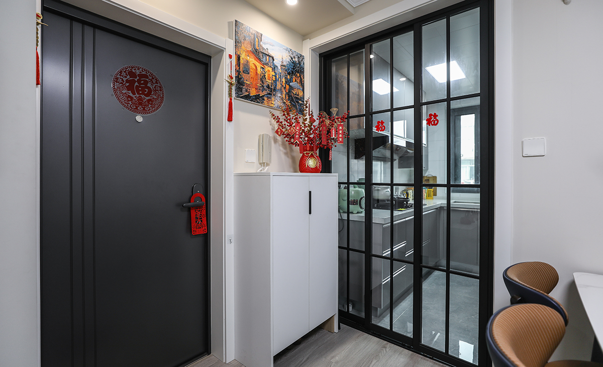 該套房屋裝修特點實用為主,充分利用空間,原客廳光線不好采光暗,客廳比較擁擠,通過改門洞,增加戶外光線攝入,以達到明亮的狀態。同時充分擴大客廳空間,已達到客廳與餐廳同時利用的需求,進戶門原來的小儲藏柜通過更改通道,變成柜中柜,充分利用房屋空間,然后再通過軟裝的搭配把現代風格的大氣時尚,端莊整潔,簡約而不簡單的氛圍凸現出來。