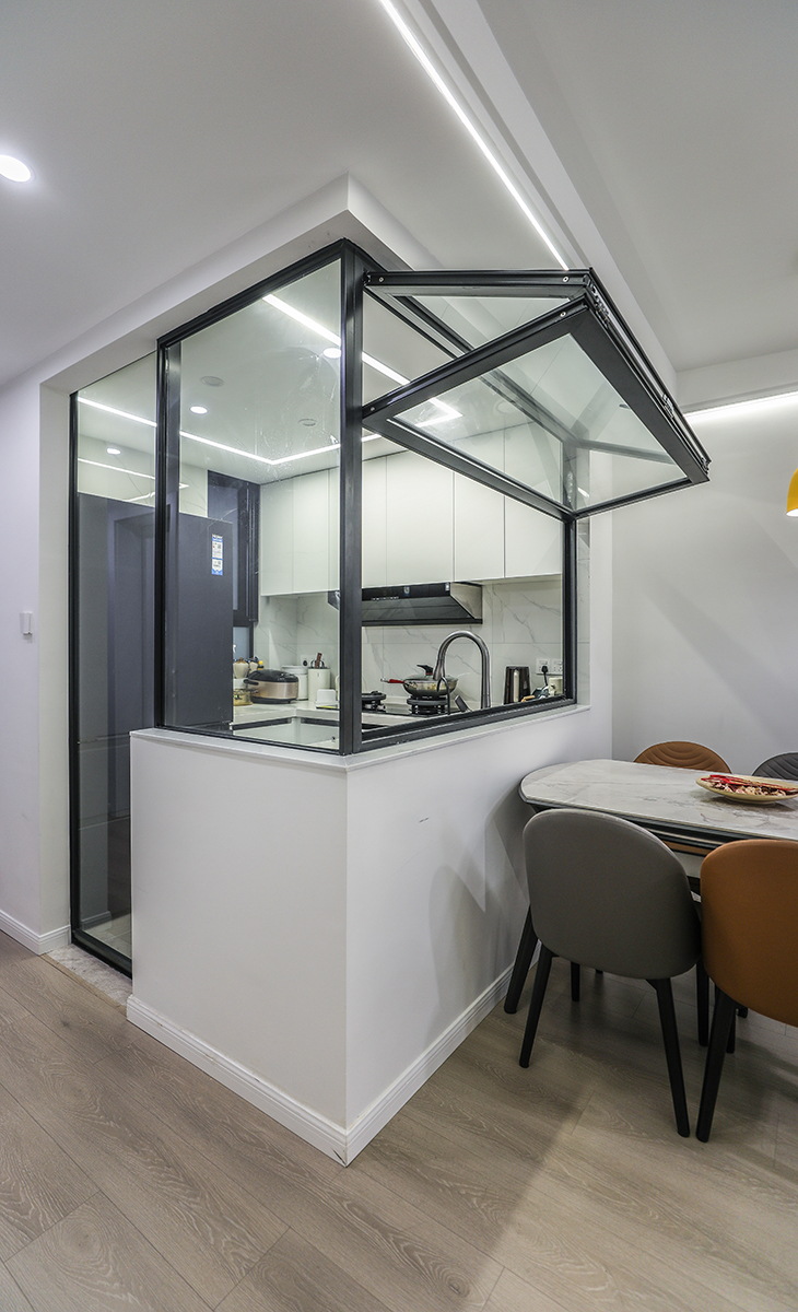 楊浦合并房裝修:簡約風格重塑空間格局,打造通透廚房!