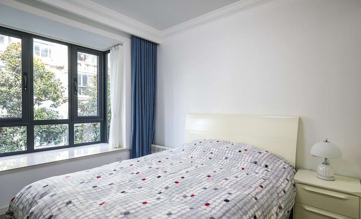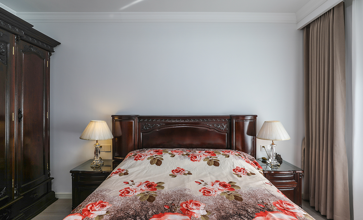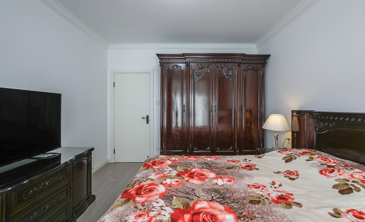 主臥保留1.8m老家具重新翻新打蠟,造型以簡潔平板為主,方便打理,體現了現代的大氣,兼容。