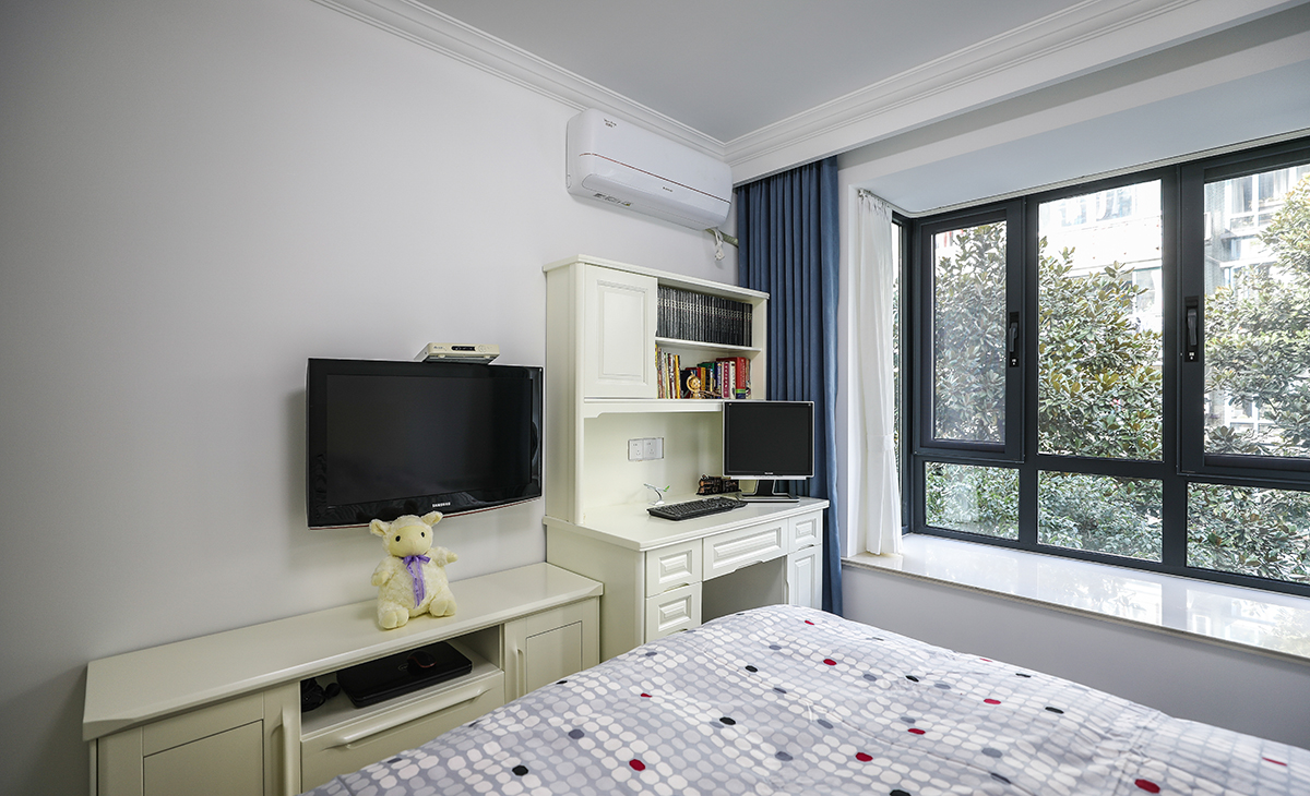 次臥采用成品家具的形式,讓8個平方的次臥空間很寬敞,不到擁擠,顏色深淺有序,很溫馨,舒適、給人感覺不僅雅致而且有韻味