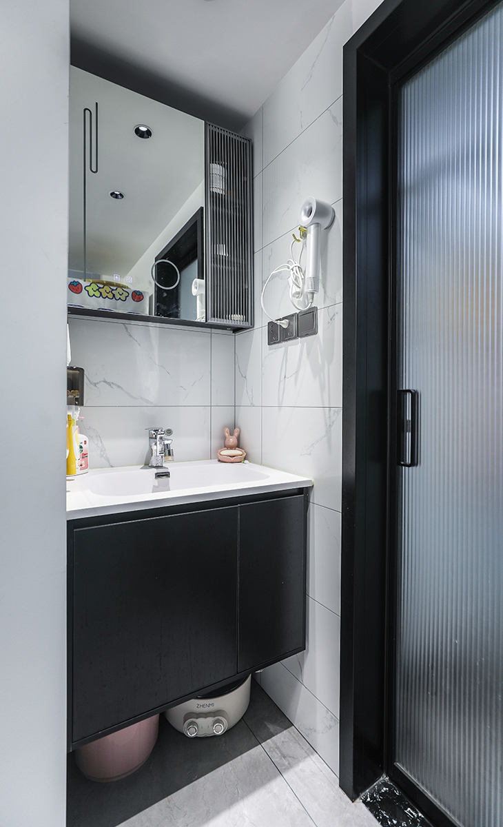 衛生間空間也不是很大,只放一個馬桶,花灑,地面采用花磚,讓整個空間協調統一,大氣時尚,主人很滿意,不斷地夸贊設計師對色彩的精準把握。