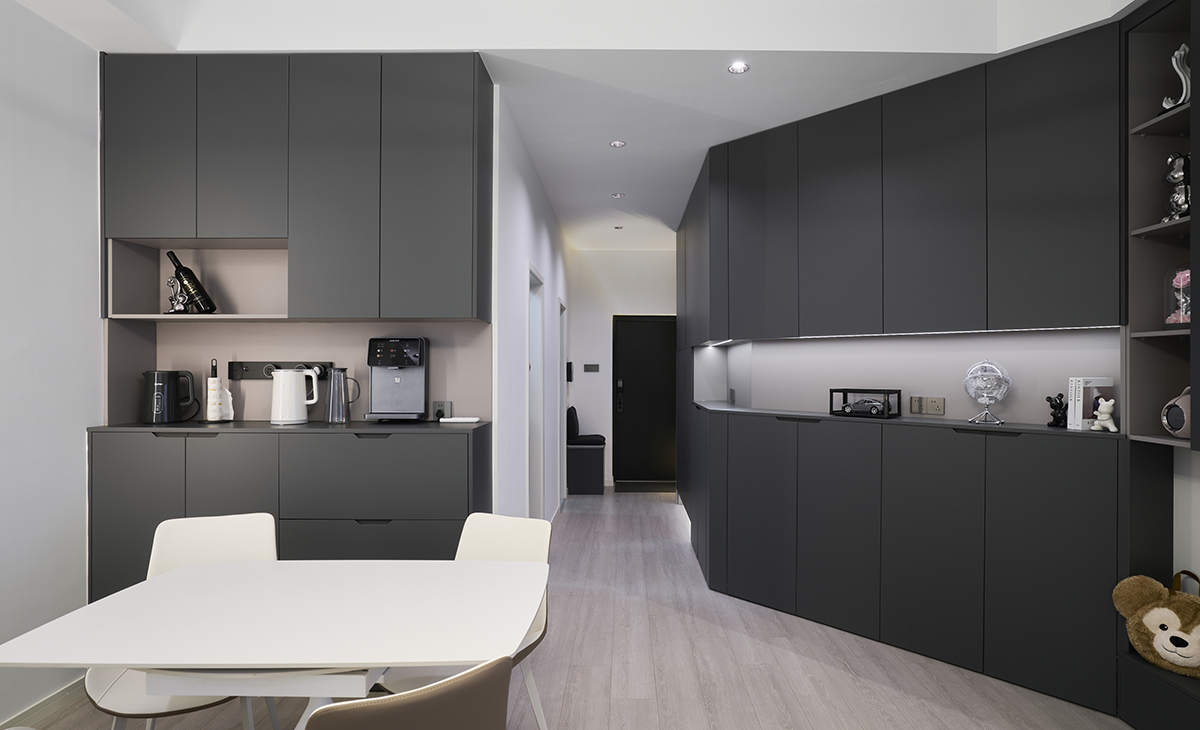餐邊柜的設計,軌道插座,加上管線機,既保證了電器的使用效率,又保證了客戶的飲水要求,使用起來方便