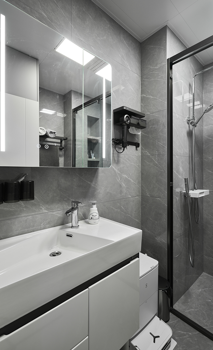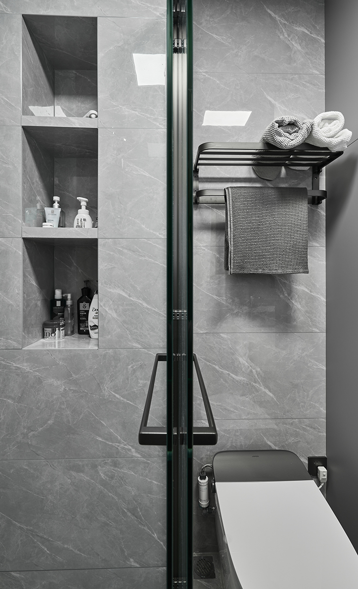 衛生間干濕分離的設計,能滿足2人同時使用,壁龕的出現節省了原本不大的淋浴區域,使得空間利用最大化