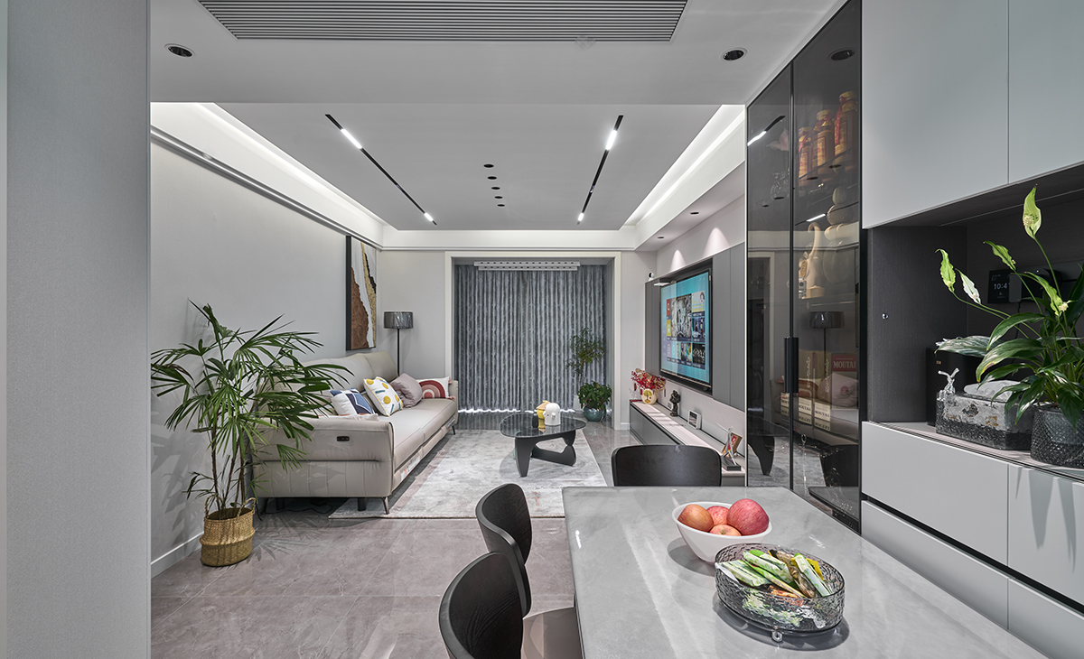 客廳整體注重通透感和簡潔性,減少隔斷。家具選擇簡約款式,如直線條的沙發、幾何造型的燈具等。可通過擺放綠植增加自然生機 。