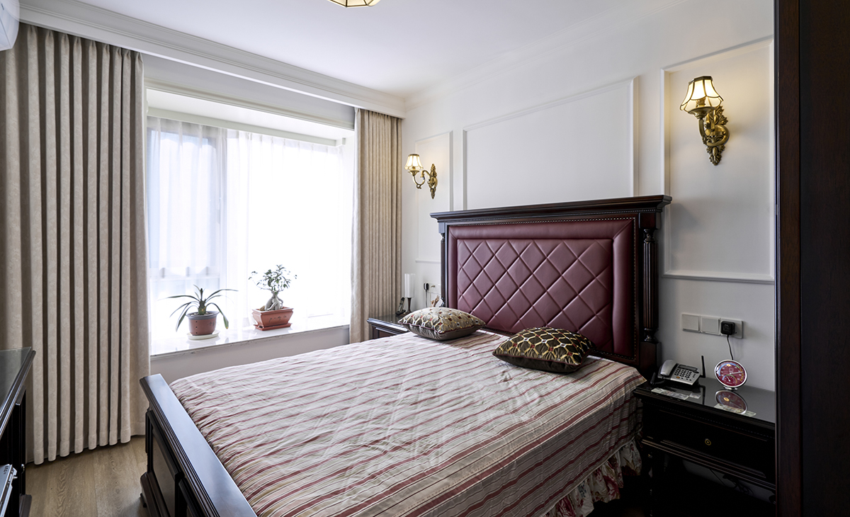 高柱床或帶有厚實軟包床頭板的床架是視覺焦點。床品強調高品質的純棉或亞麻材質,層次豐富的枕頭和披毯是標配。深色實木衣柜和床頭柜提供充足的收納。