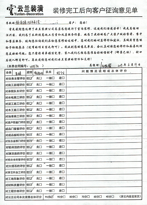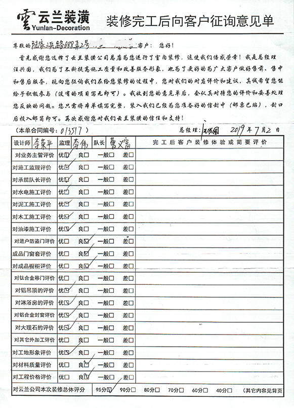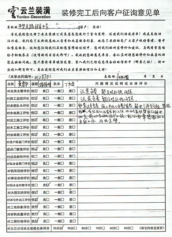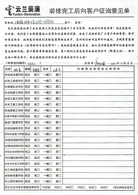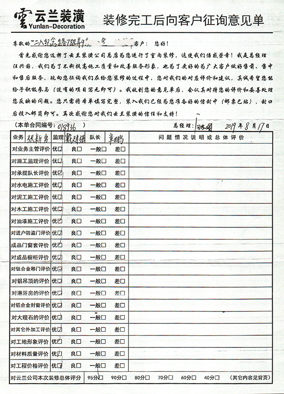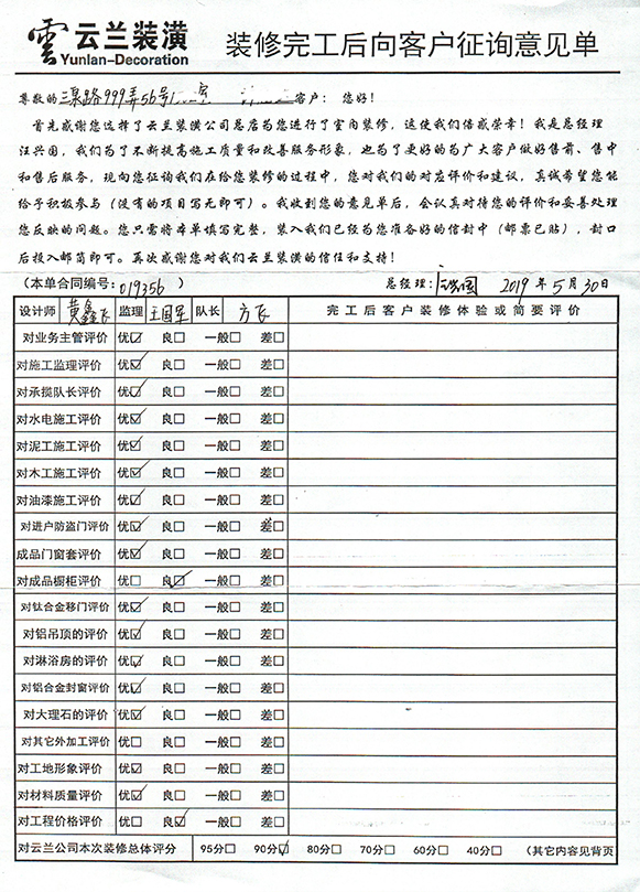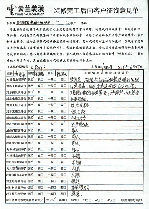 16. 客戶完工評價(電臺路330弄世紀長江苑3號)