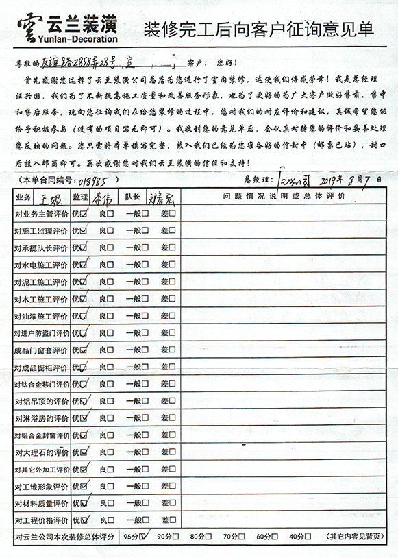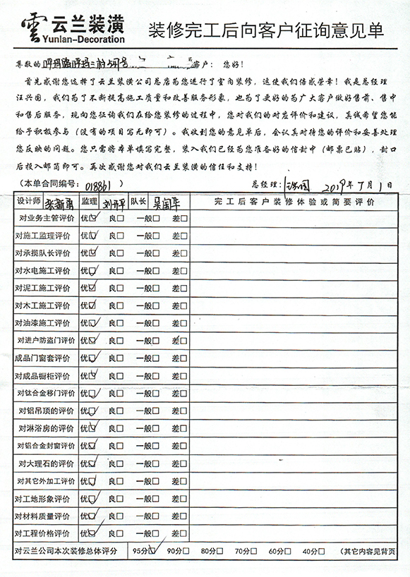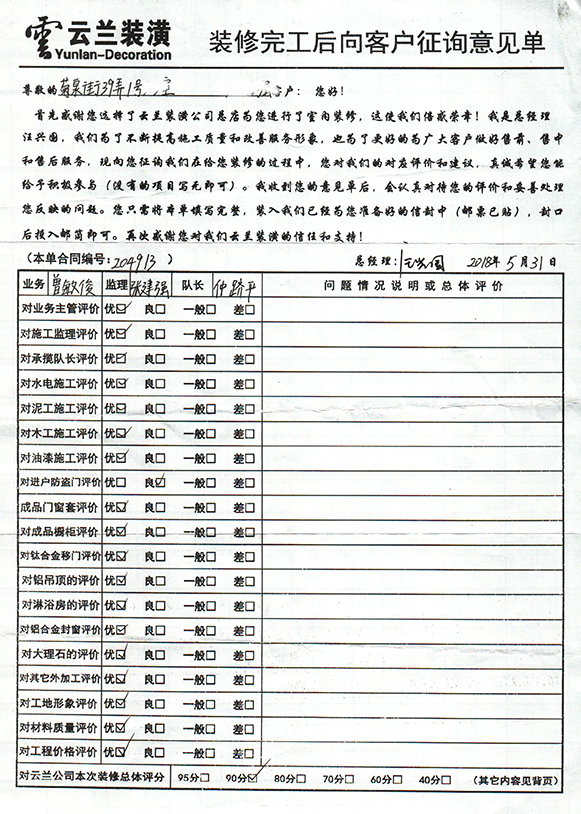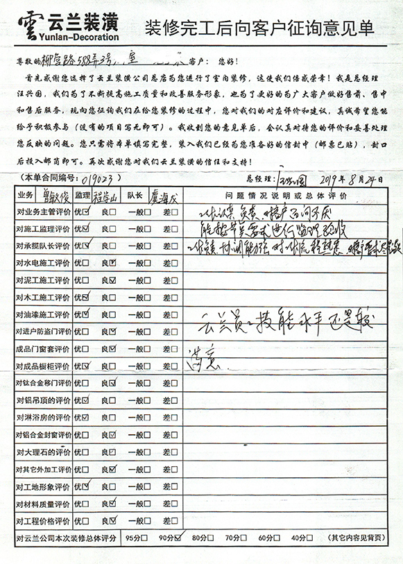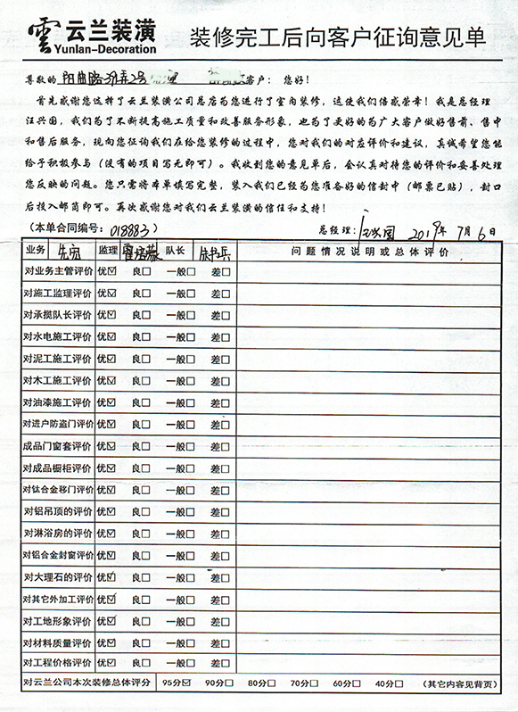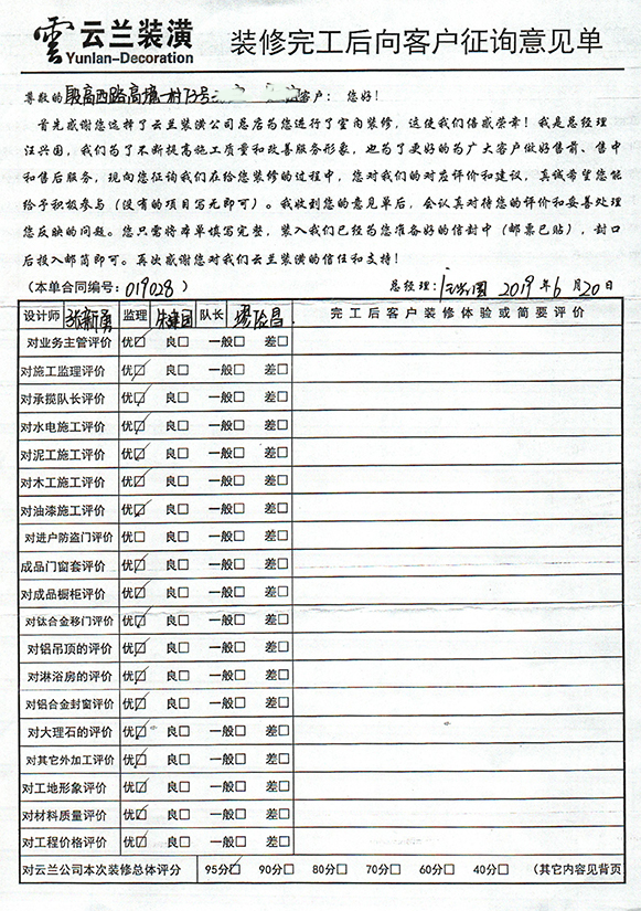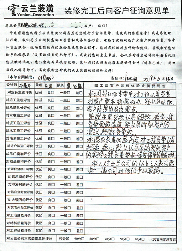 16. 客戶完工評價(電臺路330弄世紀長江苑3號)