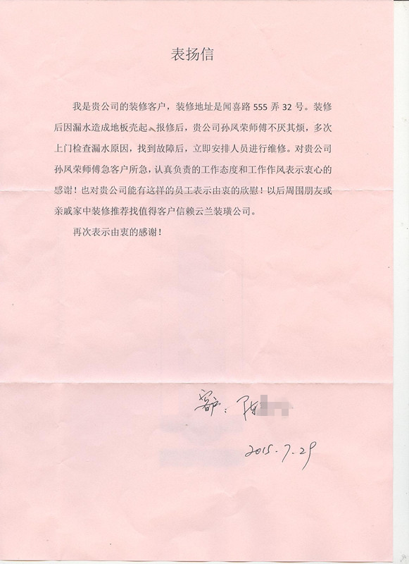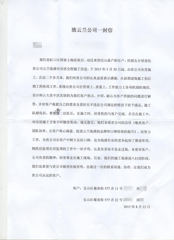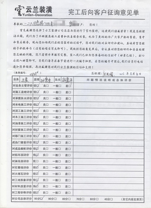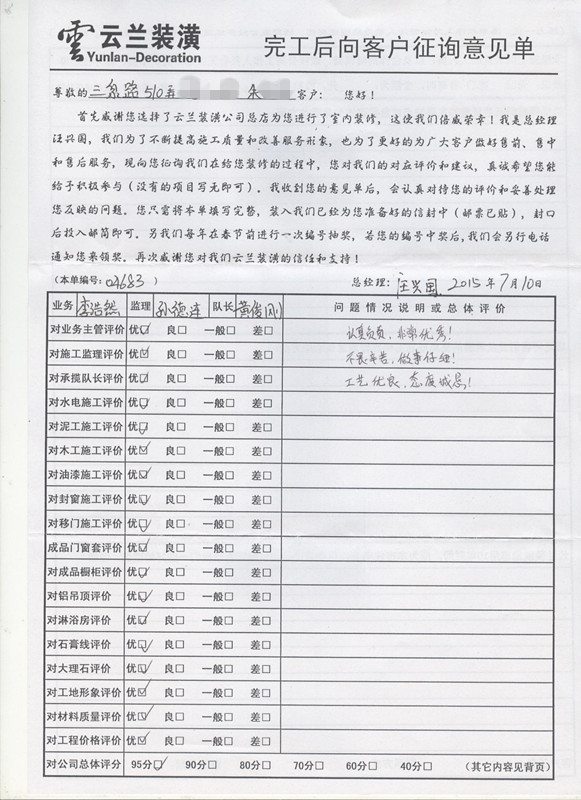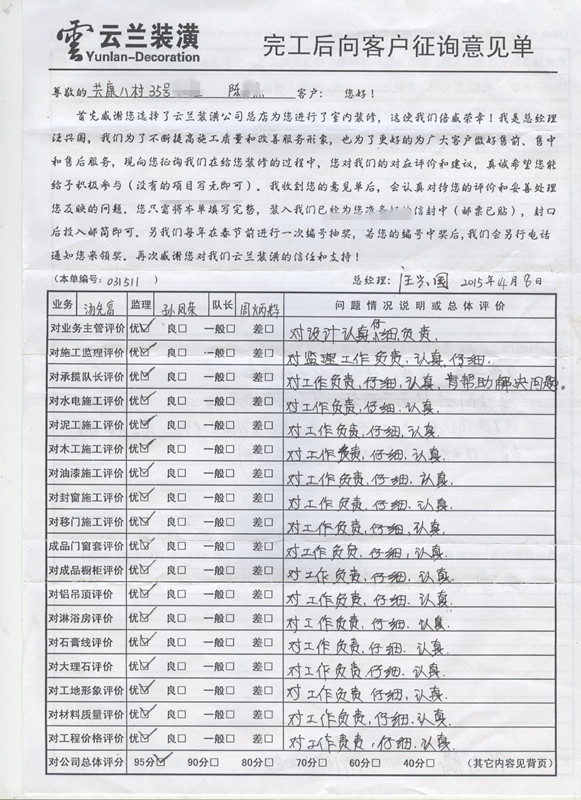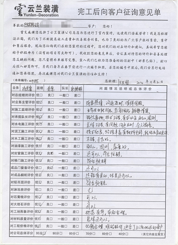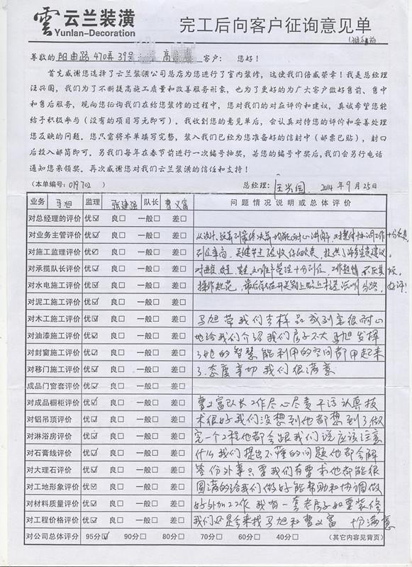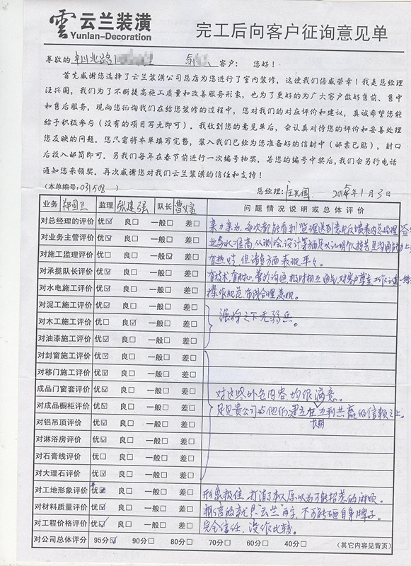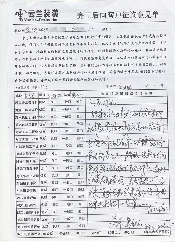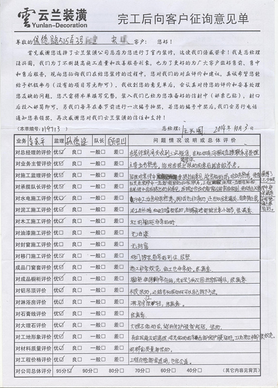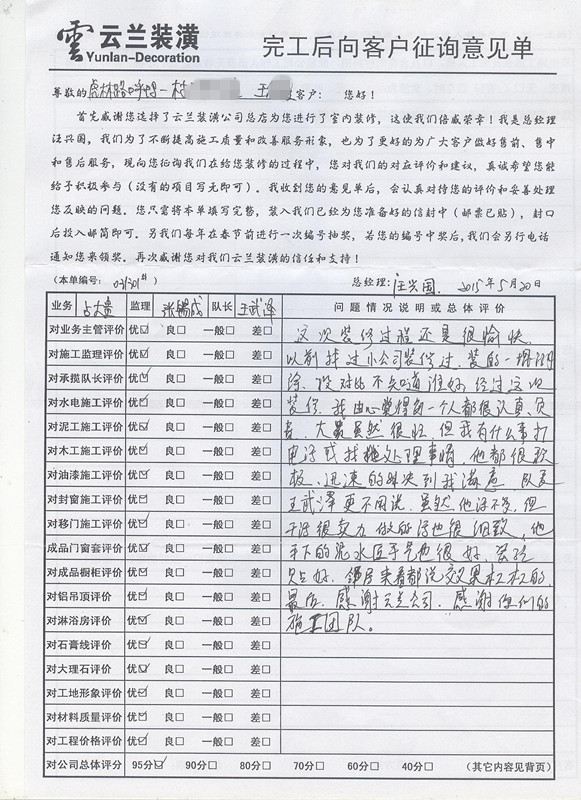 5. 客戶完工評(píng)價(jià)(聞喜路555弄)