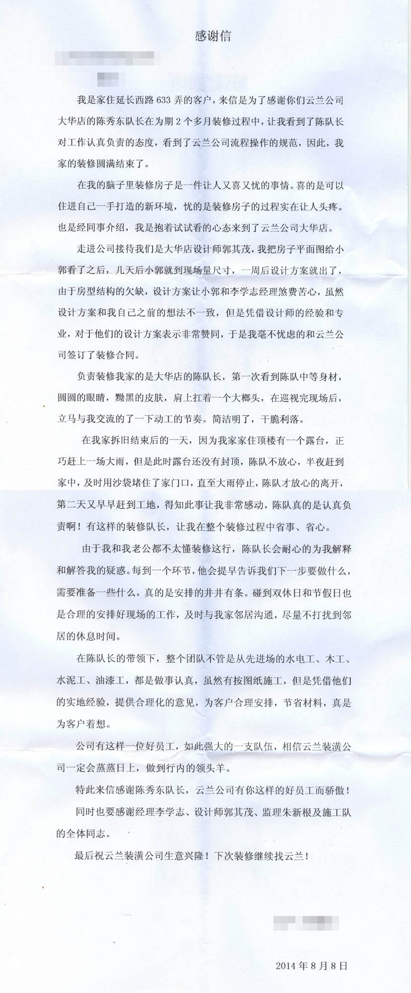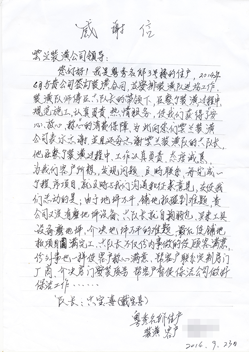 5. 客戶完工評價(平型關路粵秀名邸3號)