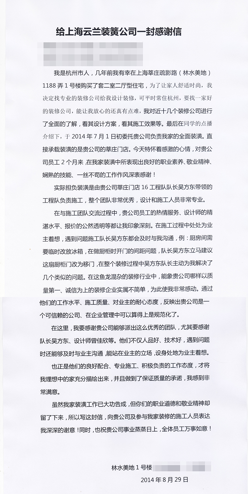 7. 客戶完工評價(上海莘莊疏影路118弄1號)