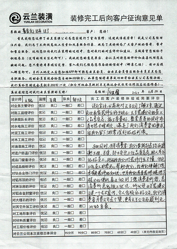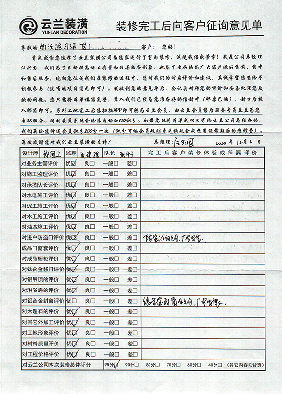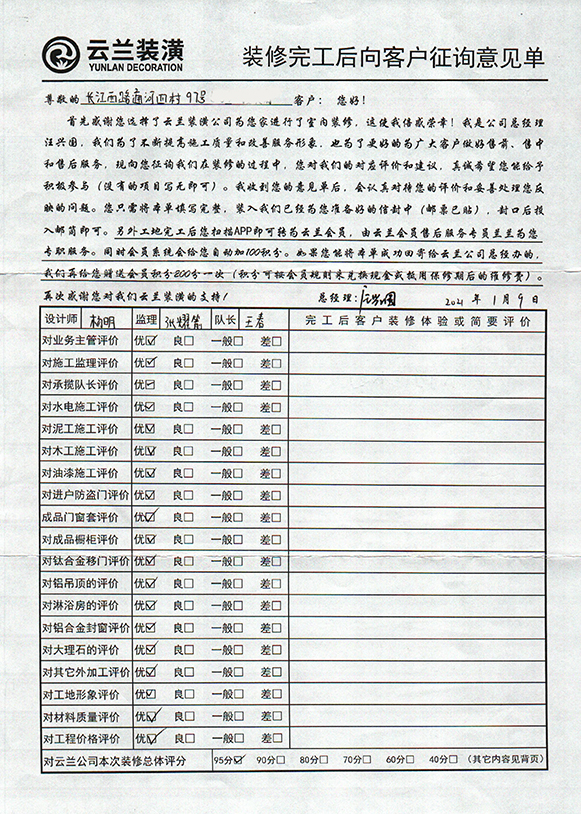 2. 客戶完工評價(長江西路泗塘二村94號)